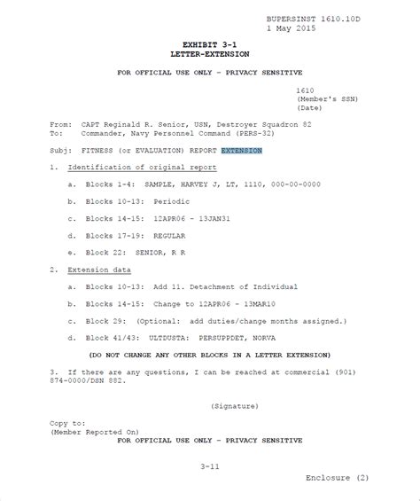 Navy Eval Extension Letter Example - To help make your eval as competitive as possible, this site contains instructions, phrases, examples, and other guidance. It's an extension to delay an eval for a reason. Usually due to things like rank up, or adding on to a periodic eval. The extension letter can be submitted by the original reporting senior or “by direction”. ***the example of a.